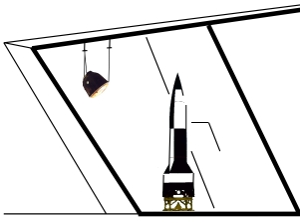 Die A4-Rakete ist mit Starttisch ca. 15 Meter hoch. Die Sojus-29-Kapsel ist geschätzt 20 Meter vom Betrachter am Boden entfernt.
