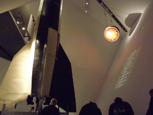 Wie oben gezeigt, ist das ein ganz besonderes Gebäude mit vielen schrägen Wänden. Die Sojus-29 ist relativ einfach zu finden. Sie befindet sich an der Decke hängend im hinteren Teil des "Libeskind-Keils".
